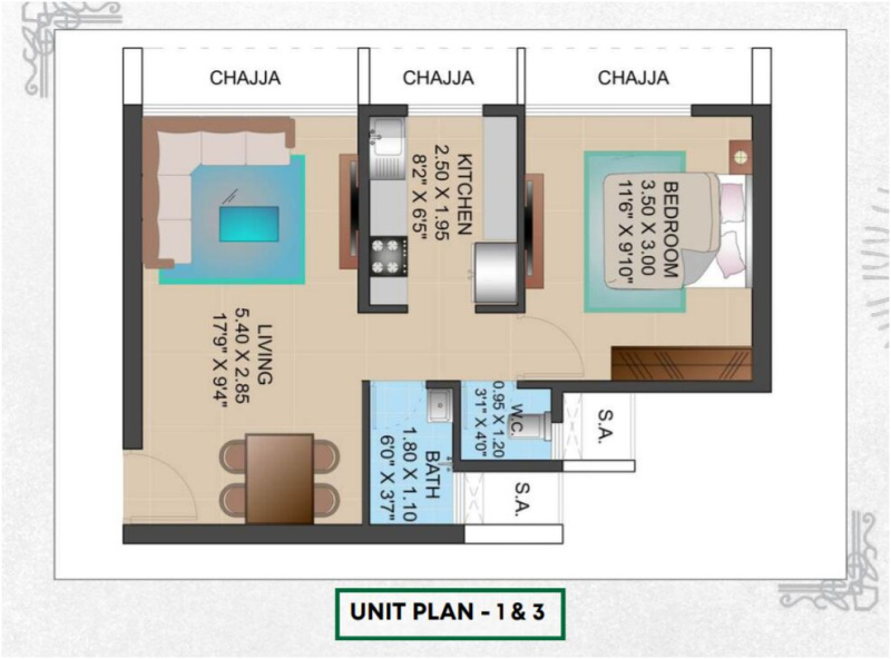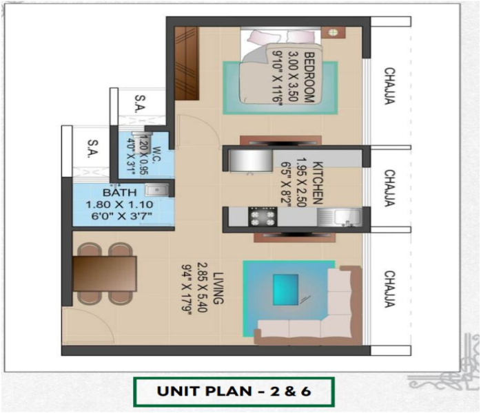 1050 Sq.ft.