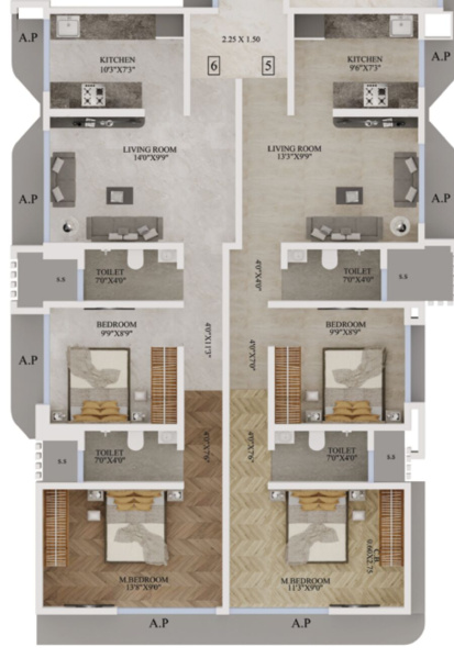 645 Sq.ft.