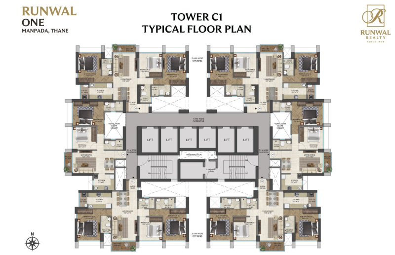 Situated amid the thriving neighbourhood in Thane, it is in the proximity of facilities like Euro School, Amber International School, C P Goenka International School, Lodha World School, Highland Super Speciality Hospital, Tieten Medicity Hospital, R Mall, High Street Mall, NaMo Grand Central Park, ISKCON Temple, Dmart, ThaneOne Corporate Park, Lodha iThink, and Tiku-ji-ni Wadi. Adjacent to the Ghodbunder Road, it has excellent connectivity to the Eastern Express Highway and Western Suburbs. The LBS Marg connects you with the commercial hubs in the city and the Central Suburbs. Thane railway station is also easy to reach. So, 25 Hour Life at Runwal One is a perfect epitome of high-standard living in Manpada, Thane.