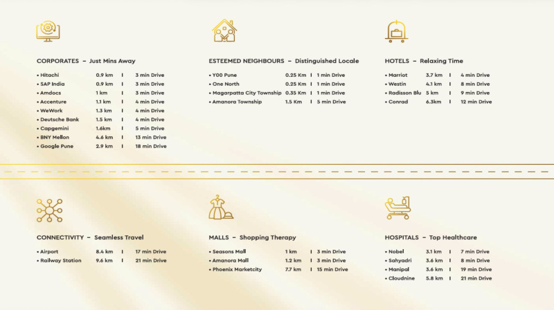Connectivity: Close to major IT parks (Kharadi), malls (Amanora, Seasons), Pune Airport, and Railway Station.