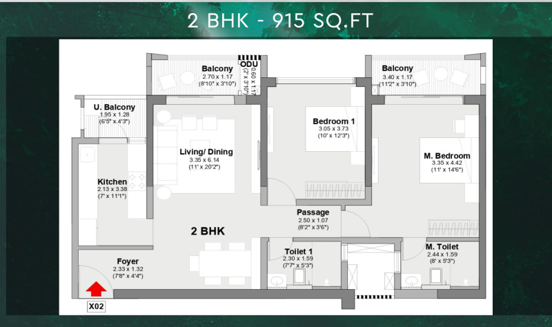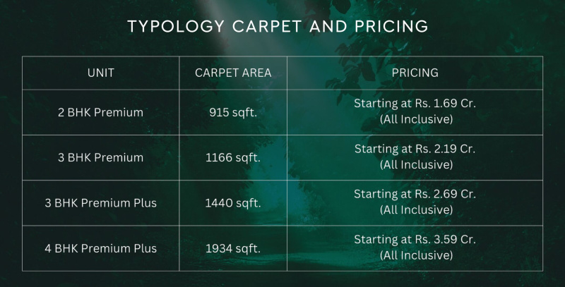 Size Range: 915 sq ft (2BHK) to ~2000 sq ft (4BHK).
