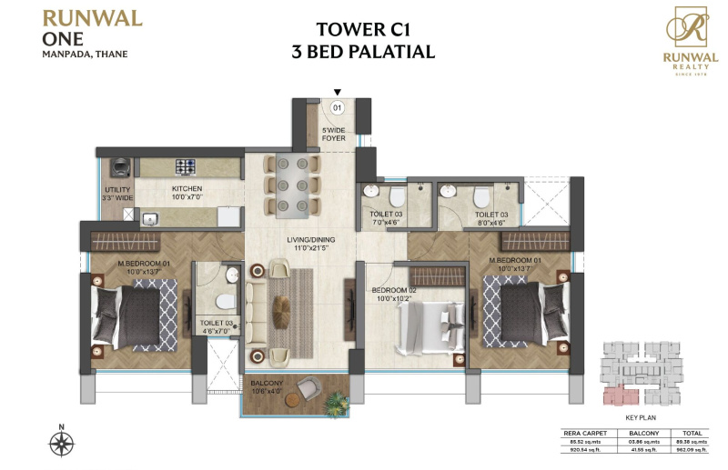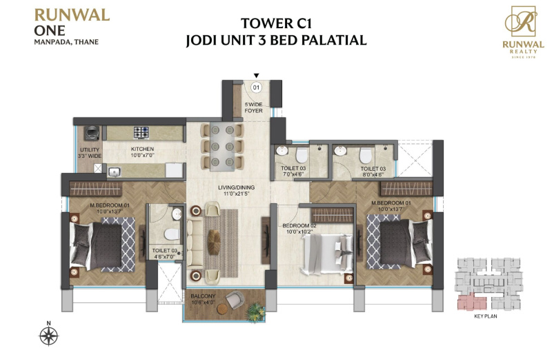 Situated amid the thriving neighbourhood in Thane, it is in the proximity of facilities like Euro School, Amber International School, C P Goenka International School, Lodha World School, Highland Super Speciality Hospital, Tieten Medicity Hospital, R Mall, High Street Mall, NaMo Grand Central Park, ISKCON Temple, Dmart, ThaneOne Corporate Park, Lodha iThink, and Tiku-ji-ni Wadi. Adjacent to the Ghodbunder Road, it has excellent connectivity to the Eastern Express Highway and Western Suburbs. The LBS Marg connects you with the commercial hubs in the city and the Central Suburbs. Thane railway station is also easy to reach. So, 25 Hour Life at Runwal One is a perfect epitome of high-standard living in Manpada, Thane.