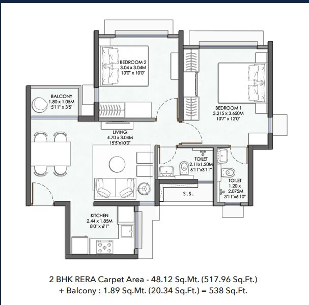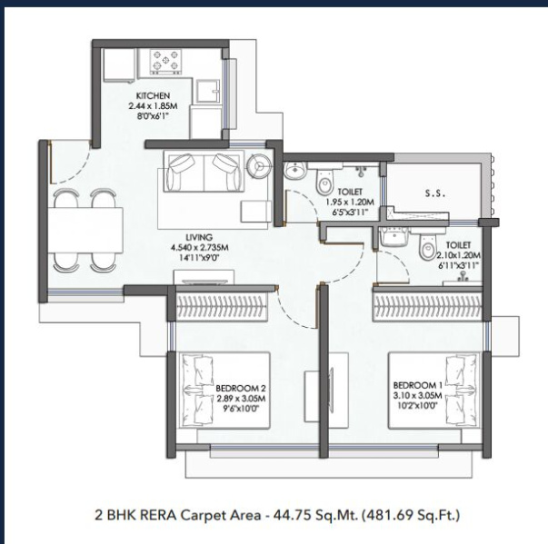 2 BHK Flats & Apartments For Sale In Pushpak Nagar, Navi Mumbai (1250 Sq.ft.)