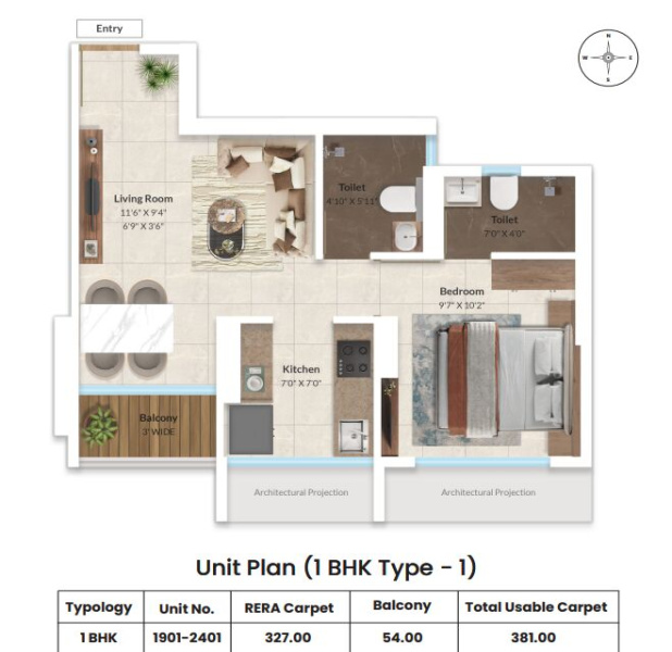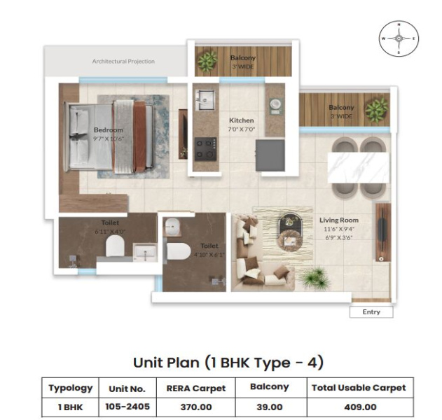 1 BHK Flats & Apartments For Sale In Ghodbunder Road, Thane (415 Sq.ft.)